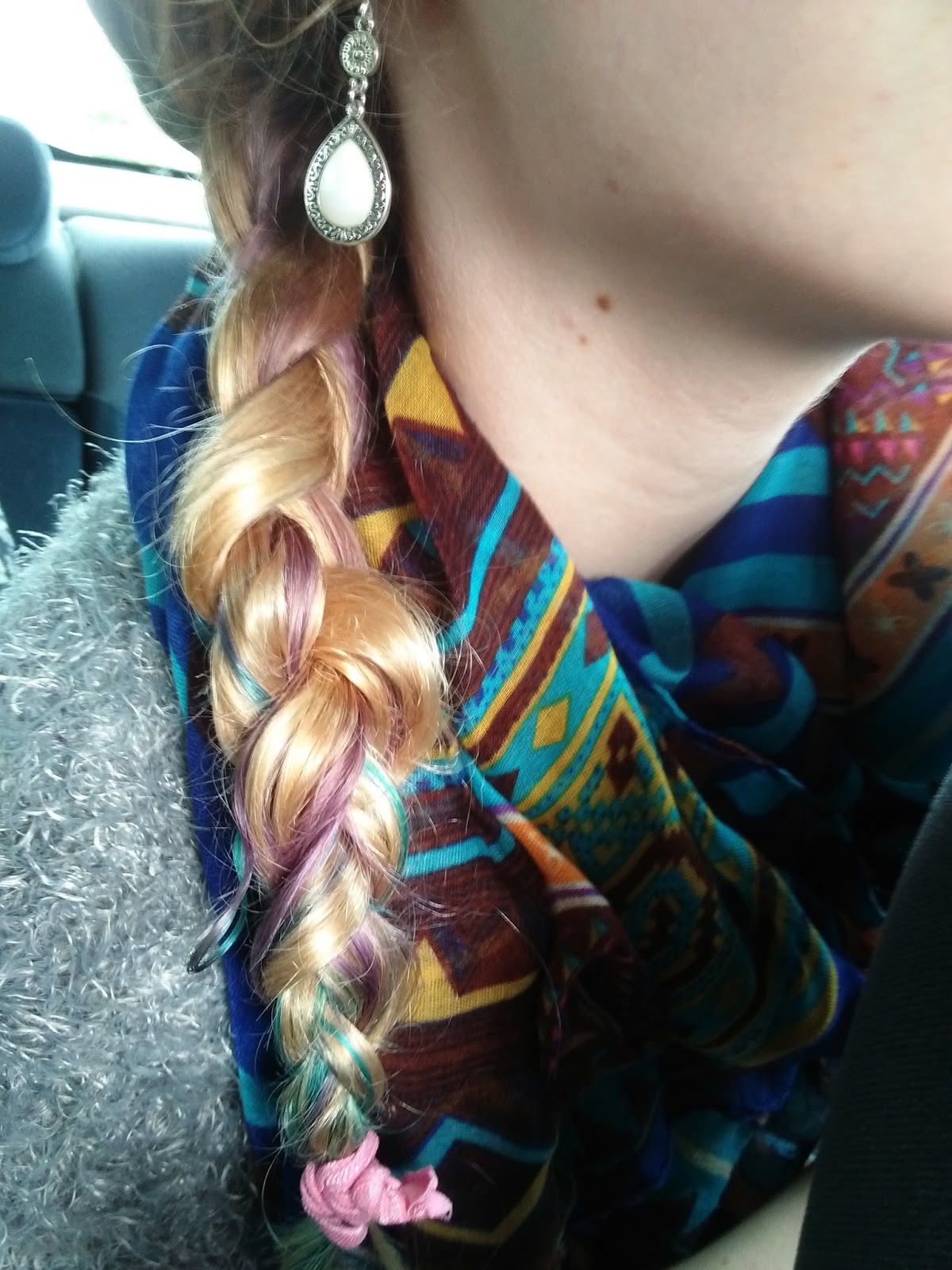 Hierna heb ik het weer geverfd, dit keer een underdye gradiënt van roze naar paars naar turquoise.